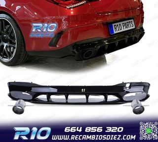 DIFUSOR TRASERO NEGRO BRILLO CON COLAS CROMO PARA MERCEDES CLA C117