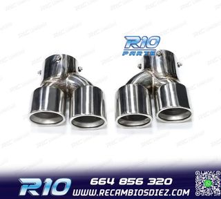 Móvil: 664 856 320 - Referencia: CRC011131. COLAS ESCAPE BMW LOOK M PERFORMANCE CROMO CARBONO Especificaciones: Modelo: Look M Performance Lado de montaje: Ambos lados Tipo de salida: Doble Color: Cromo / Carbono Diámetro de entrada: Interior: 60mm Exterior: 63mm Otras dimensiones: Diámetro cada salida exterior: 89mm Largo: 250mm Ancho total: 190mm Montaje. Fácil instalación sin modificar nada en el vehículo. Kit completo. Incluye las 2 colas de escape listas para instalar. Estos no son productos originales de la marca BMW. El artículo ofrecido, solo es compatible para