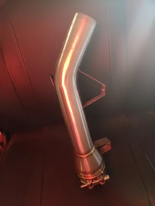 Pieza de acero inoxidable para sistema de escape de motocicleta. Diseñada para un ajuste preciso y durabilidad. A estrenar.