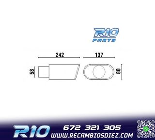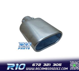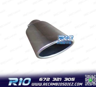 Móvil: 672 321 305 - Referencia: ESC010312. COLA ESCAPE OVALADA ACERO INOX Especificaciones: Modelo: Ovalada Material: Acero inoxidable Medida: 242mm (largo), 137mm (ancho) Diámetro de entrada: 60mm Montaje. Instalación sencilla, sujección mediante tornillo o punto de soldadura. Imagen. Dale un toque más deportivo al vehículo con esta cola de escape.
