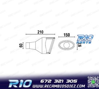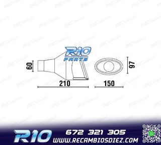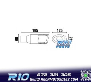 Móvil: 672 321 305 - Referencia: ESC000434. COLA ESCAPE UNIVERSAL INOX Especificaciones: Modelo: Ovalada Material: Acero inoxidable Medida: 180 mm (largo), 152 mm (ancho), 75 mm (alto) Diámetro de entrada: 60 mm Montaje. Instalación sencilla, sujección mediante tornillo o punto de soldadura. Imagen. Dale un toque más deportivo al vehículo con esta cola de escape.