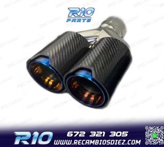 Móvil: 672 321 305 - Referencia: ESC010104. COLA ESCAPE IZQUIERDA BMW LOOK M PERFORMANCE AZUL CARBONO Especificaciones: Modelo: Look M Performance Lado de montaje: Izquierda Tipo de salida: Doble Color: Azul / Carbono Diámetro de entrada: Interior: 60 mm Exterior: 63 mm Diámetro cada salida exterior: 89 mm Largo: 250 mm Ancho total: 190 mm Montaje. Fácil instalación sin modificar nada en el vehículo. Kit completo. Incluye las 2 colas de escape listas para instalar. Estos no son productos originales de la marca BMW. El artículo ofrecido, solo es compatible para los modelos