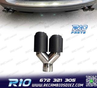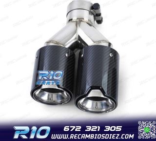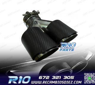 Móvil: 672 321 305 - Referencia: CRC011792. COLA ESCAPE DOBLE BMW M PERFORMANCE CARBONO CROMO IZQ Especificaciones: Modelo: Look M Performance Lado de montaje: Izquierda Tipo de salida: Doble Color: Cromo / Carbono Diámetro de entrada: Interior: 60 mm Exterior: 63 mm Diámetro cada salida exterior: 89 mm Largo: 250 mm Ancho total: 192 mm Montaje. Fácil instalación sin modificar nada en el vehículo. Kit completo. Incluye las 2 colas de escape listas para instalar. Estos no son productos originales de la marca BMW. El artículo ofrecido, solo es compatible para los modelos de vehí