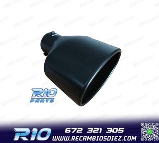 Móvil: 672 321 305 - Referencia: ESC010116. COLA ESCAPE DCH UNIVERSAL LOOK CUPRA 3 OVALADA Especificaciones: Modelo: Ovalada con corte diagonal Color: Negro mate Lado derecho Medida: 210 mm (largo), 150 mm (ancho), 97 mm (alto) Diámetro de entrada: 60 mm Montaje. Instalación sencilla, sujeción mediante tornillo o punto de soldadura. Imagen. Dale un toque más deportivo al vehículo con esta cola de escape.