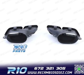Móvil: 672 321 305 - Referencia: RLC012266. COLAS ESCAPE MERCEDES CLASE C W205 14-18 LOOK C63 AMG Válido para: Mercedes Clase C W205 (2014-2018) Sólo para paragolpes look C63 Especificaciones: Modelo: Look AMG C63 Lado de montaje: Ambos lados Tipo de salida: 2 x Doble Color: Negro Montaje. Fácil instalación sin modificar nada en el vehículo Kit completo. Incluye las 2 colas de escape listas para instalar Estos no son productos originales de la marca MERCEDES. El artículo ofrecido, solo es compatible para los modelos de vehículos descritos.
