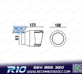 Móvil: 664 856 320 - Referencia: ESC000295. COLA ESCAPE REDONDA 100 MM ACERO INOX Especificaciones: Modelo: Redonda con borde fino Material: Acero inoxidable Medida: 190 mm (largo), 100 mm (ancho) Diámetro de entrada: 60 mm Montaje. Instalación sencilla, sujección mediante tornillo o punto de soldadura. Imagen. Dale un toque más deportivo al vehículo con esta cola de escape.