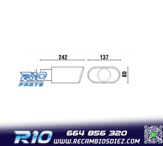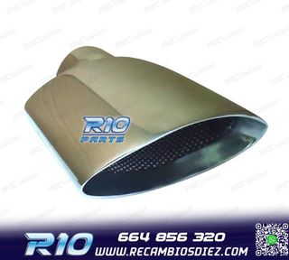 Móvil: 664 856 320 - Referencia: ESC010312. COLA ESCAPE OVALADA ACERO INOX Especificaciones: Modelo: Ovalada Material: Acero inoxidable Medida: 242mm (largo), 137mm (ancho) Diámetro de entrada: 60mm Montaje. Instalación sencilla, sujección mediante tornillo o punto de soldadura. Imagen. Dale un toque más deportivo al vehículo con esta cola de escape.