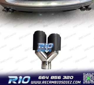 Referencia: AMP12760 COLAS ESCAPE CARBONO BMW LOOK M PERFORMANCE COLAS ESCAPE DOBLES EN CADA LADO En carbono Material: acero inoxidable hacia el lado izquierdo y derecho 2x tubo doble Recubierto con CARBONO REAL Diámetro de conexión: 63 mm - Aspecto mejorado y deportivo. - Fácil instalación mediante abrazadera de escape (incluida) - muy buena calidad - Ajuste absolutamente perfecto - Incluye abrazaderas de banda ancha para una fácil conversión sin soldadura Somos AMP. Somos un equipo de técnicos serio y experto, poseemos un gran catálogo online de productos. Ofrecemos 2 años de garantía, y todos nuestros artículos son nuev...