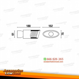 Móvil: 664 856 320 - Referencia: ESC000434. COLA ESCAPE UNIVERSAL INOX Especificaciones: Modelo: Ovalada Material: Acero inoxidable Medida: 180 mm (largo), 152 mm (ancho), 75 mm (alto) Diámetro de entrada: 60 mm Montaje. Instalación sencilla, sujección mediante tornillo o punto de soldadura. Imagen. Dale un toque más deportivo al vehículo con esta cola de escape.