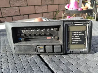 Módulo de control para la calefacción y el aire acondicionado de un Opel Vectra A. Incluye pantalla digital. - Controles para la climatización. - Pantalla con información de consumo y autonomía.