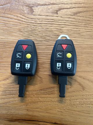 Dos llaves de mando para Volvo C30 / S40 / V50. Incluyen el mando a distancia y la llave física. Nunca usadas. Listas para codificar. - Mando con botones de apertura, cierre y maletero. - Diseño ergonómico y compacto.