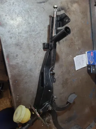 Conjunto de columna de dirección con pedales y depósito,clausor a la izquierda,para ir sin mastervac,muelle retorno freno roto - Columna de dirección negra. - Pedales de acelerador y freno. - Depósito auxiliar amarillo.
