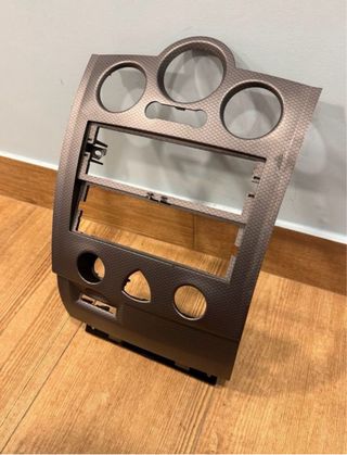 Marco embellecedor para la consola central de Mercedes Vito 639. Pieza de plástico gris oscuro. Faltan aireadores como se aprecia en las fotos,se pueden cambiar de otra Ref A6396800007
