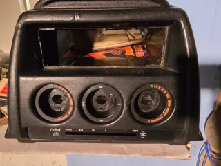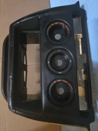 Consola central para Mercedes 190D W201. Pieza de plástico negro. Ref.20116830275 - Compartimento superior. - Tres diales circulares.