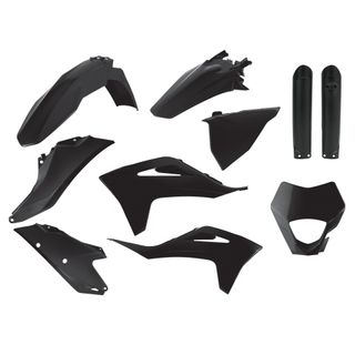 Kit completo de plásticos POLISPORT para motos KTM EXC/EXC-F/XC-W/XCF-W . 125 200 250 300 350 450. de los años 2008, 2009, 2010, 2011. REF: 91458. El kit incluye todas las piezas que se ven en las fotos. Son de color negro. - Incluye todos los plásticos de la carrocería. - Perfectos para darle un nuevo look a tu moto. - Fabricados en plástico resistente. recambios accesorios kit plasticos carroceria carenado piezas plastico