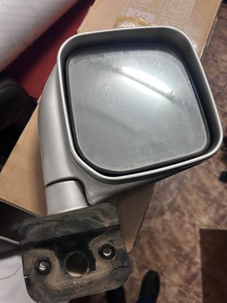 Espejo retrovisor exterior para puerta delantera izquierda de Galloper. Se vende completo. - Carcasa plateada. - Base de goma negra. - Cristal con inscripciones.