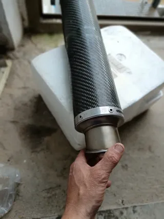 Escape para Yamaha R6 del año 2005. Fabricado con un acabado en carbono. - Diseño deportivo. - Material: Fibra de carbono y metal.