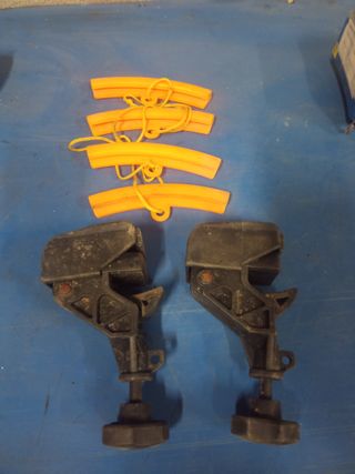 Set de 2 mordazas y 4 protectores para el cambio de neumáticos en maquina. - 2 mordazas de sujeción. - 4 protectores de llanta naranjas.