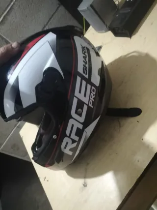 Casco de moto de la marca Shark, con un diseño deportivo y moderno. - Color negro con detalles en blanco y gris. - Visera oscura. - Logo de Shark visible - precio negociable