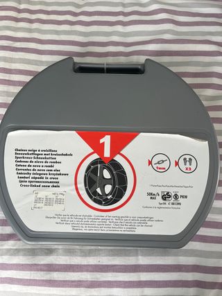 Cadenas de nieve para coche, modelo 1. - Compatibles con neumáticos de 9mm. - Incluye 2 cadenas. - Homologadas para 50 km/h. - Certificación GS y PKW. - Tipo: ONE N° 001390. - Fabricadas en Europa.