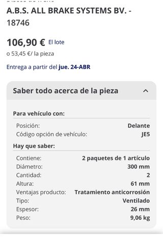 Discos de freno 300mmx30. Cb. 70.3 / Pcd 5x115 Para GM, Cadillac, Opel, Chevrolet...
