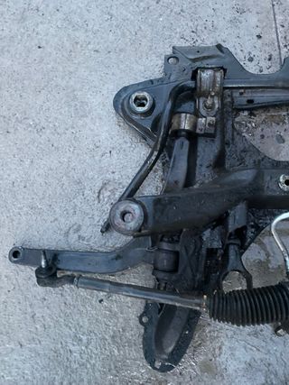 Conjunto de cuna de dirección para Peugeot 406. Pieza de desguace. - Incluye cremallera de dirección. - Mangueras y soportes visibles.
