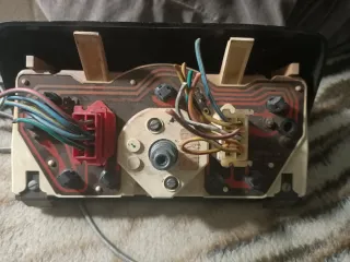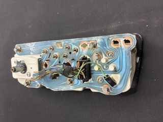 Cuadro de instrumentos para Opel Corsa A SR GT. Incluye velocímetro, tacómetro, indicador de combustible y temperatura. - Velocímetro hasta 200 km/h. - Tacómetro hasta 7000 rpm (x100). - Indicador de combustible. - Indicador de temperatura.tiene la palanca del parcial ma