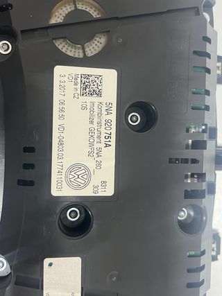 Cuadro de instrumentos para Volkswagen Tiguan. - Referencia: 5NA 920 751A - Fabricado en República Checa (Made in CZ) - Fecha de fabricación: 3.3.2017 - Modelo: Kombiinstrument 5NA 260 - Incluye inmovilizador GEKOWFS2