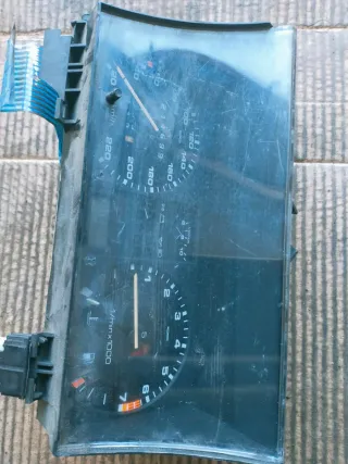 Cuadro de instrumentos para Ford Fiesta MK3. Se encuentra en buen estado. - Velocímetro hasta 240 km/h. - Indicador de revoluciones. - Indicadores de combustible y temperatura. - Cuentakilómetros digital.