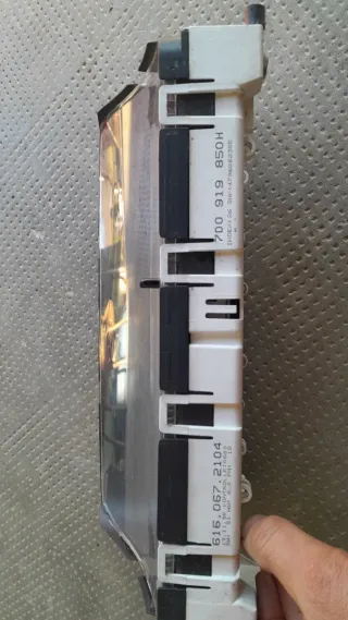 Cuadro de instrumentos para Volkswagen VW T4 2.5 TDI . Incluye velocímetro, tacómetro, indicador de temperatura y nivel de combustible. - Velocímetro hasta 200 km/h. - Tacómetro hasta 12 - Indicador de temperatura (°C). - Indicador de nivel de combustible (1/1 a 1/2). - Pantalla digital para kilometraje. 7D0 919 850H 616,067,2104 - 616.067.2104