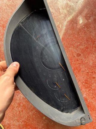 Marco embellecedor para el cuadro del velocímetro de Peugeot 106,panel de plastico,salpicadero,despiece 106,sport,gti... - Pieza de plástico negro. - Diseño curvo superior y recto inferior.