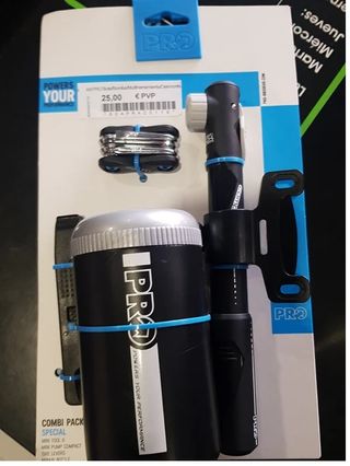 Kit de herramientas PRO y bomba de aire compacta para bicicleta. - Incluye mini herramienta multifunción (6 funciones). - Bomba de aire compacta. - Desmontables para neumáticos. - Botella de almacenamiento. - Modelo: Combi Pack Special. TIENDA ESPECIALIZADA COMPRUEBE NUESTRAS RESEÑAS EN WALLAPOP Puedes pagar por bizum añadiendo 9€ para el envío. podemos juntar varios articulos y pagar un solo porte NO REALIZAMOS ENVÍO CON INPOST. Elegir siempre correos. Nuevo a estrenar con factura y garantia piezas repuestos recambios bici bicicleta montaña mountain bike mtb xc xco rally maratón marathon allmountain trail enduro dh descenso
