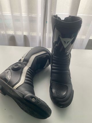 Botas de moto Dainese Avant Race Lady, diseñadas para mujer. - Color negro y blanco. - Cierre de cremallera. - Protecciones integradas. -talla 38 -Casi en perfecto estado, tiene un par de rozones meramente estéticos. No afecta en nada. -usadas muy poco porque tengo otras dos