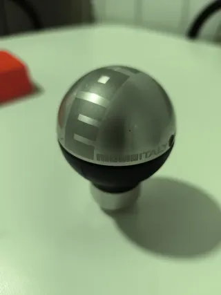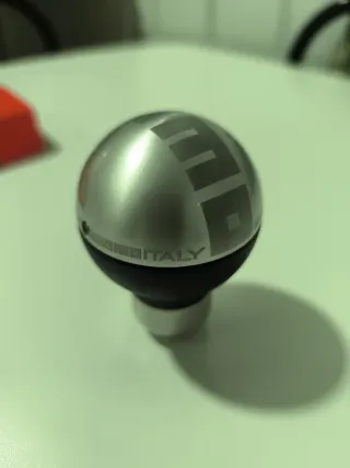 Pomo de cambio de marchas de la marca Momo, modelo Italia. Diseño esférico con acabado metálico y detalles en negro. - Marca: Momo - Modelo: Italia - Material: Metal y plástico