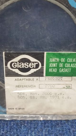 Junta de culata para Peugeot 504 y 505. Ref: 2760-38 Más artículos en recambiosvehiculosclasicos.com R.V.C Se envía 622076323