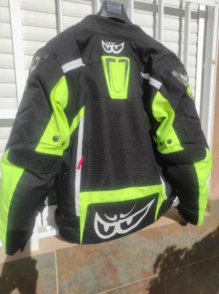 Chaqueta de moto negra con muy poco uso, solo puesta dos o tres veces. Sirve tanto para invierno como verano ya que se puede quitar el acolchado de dentro. Con protecciones talla M