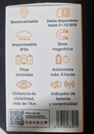 Baliza con múltiples funciones para tu seguridad y localización. - Geolocalizable - Impermeable IP54 - Datos disponibles hasta 31-12-2038 - Base magnética - Pilas incluidas - Autonomía máx. 6 horas - Indicador de batería y conectividad - Distancia de visibilidad, más de 1Km