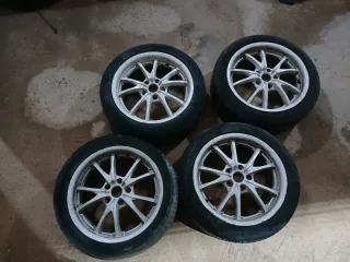 Juego de llantas de aleación plateadas con diseño deportivo. - Diseño de 10 radios. - Acabado plateado. - Incluye neumáticos. Negociable