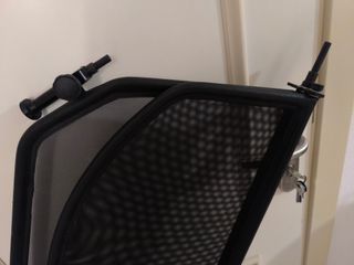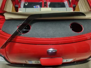 Deflector de viento diseñado para Mini Cabrio. - Material: Tela negra y estructura de plástico negro.