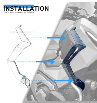 Deflectores laterales para Honda X-ADV. Diseñados para una instalación sencilla y estable. - Fabricados en material resistente. - Diseño que se adapta al carenado de la moto.