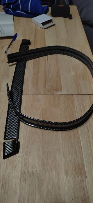 Tira efecto carbono para hacer pequeño alerón en coche como protector. Muy poco uso xq enseguida de ponerlo me compré un coche familiar. Incluye los topes laterales para un perfecto acabado y protección.