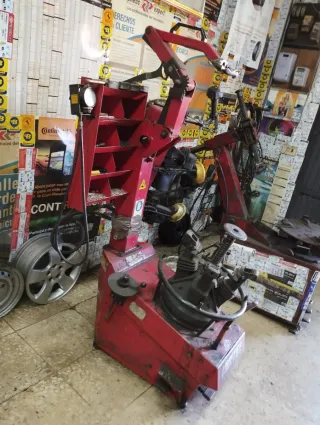 Se vende máquina desmontadora de neumáticos, ideal para talleres. - Estructura robusta de color rojo. - Brazos de asistencia para facilitar el trabajo.