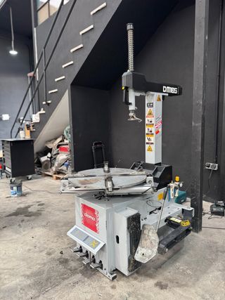 Máquina desmontadora de neumáticos profesional Dama DM105. - Diseñada para facilitar el cambio de neumáticos. - Estructura robusta y duradera. - Panel de control intuitivo con pedales.