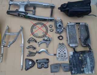 Vendo algunas piezas de un despiece de Suzuki RMZ 250 4T año 2004, piezas validas para Kawasaki KXF 250 2004 son la misma moto, tengo lo que sale en las fotos, lo que no aparece no lo tengo.....desposito, subchasis, carburador, tapa de balancines, basculante, bieletas, tapa de encendido....