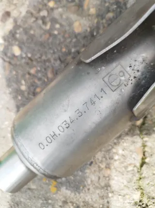 Escape completo original para Derbi 125 de 2 tiempos. Pieza de despiece. - Fabricado en metal. - Diseño curvo característico.