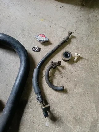 Piezas de despiece para radiador de Honda Prelude con motor H22. Incluye varias mangueras y accesorios. Manguito superior e inferior, tapón de llenado y vaciado. En buen estado