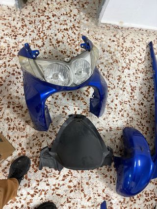 Piezas de despiece para Suzuki Burgman 250 y 400. 2002 2003 2004 2005 2006 2007 - Carenado frontal azul con faros. - Guardabarros delantero azul. - Pieza central negra. - Pieza lateral azul.