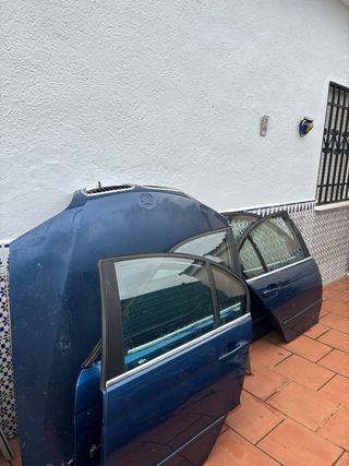 Piezas de despiece para BMW E46 en color azul. Incluye capó y puertas. - Capó delantero. - Puertas delanteras y traseras.