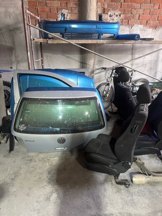 Piezas de despiece para Volkswagen Golf 4. Se venden componentes sueltos o en conjunto. - Asientos color negro - Techo y pilares (negro y otro gris) - Llantas Seat - Motor con junta culata 1.9 - Caja de cambios 5v - Suspensión de origen - Palieres - Brazos de suspension - Escape - Toda la carrocería del coche - Manguetas - Aletas - Capó - Paragolpes trasero y delantero - Frontal entero (radiadores y araña) - maletero - Guantera