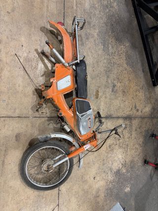 Piezas de Mobylette Campera en color naranja. #PREGUNTAR SIN COMPROMISO - Chasis - Ruedas - Asiento - Guardabarros - Manillar - Horquilla - Soporte motor - Parrilla trasera -Posibilidad de vender completa